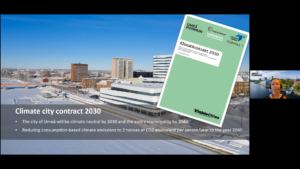 The last city to present was Umeå, represented by Ms. Annika Dalén, Strategic Development and Gender Equality Officer, Municipality of Umeå, who highlighted the intimate connection between climate change and social sustainability in general and gender equality in particular. The city hopes to increase its population from 130,000 to 200,000 by 2050. This vision specifically states that the growth has to be socially, environmentally, economically and culturally sustainable. For more than 30 years, Umeå has strived for gender equality, calling its method of work the “gendered landscape”. In its plan to reduce its consumption-based climate emissions to 2 tons of CO2 equivalent per person/year by the year 2040, it raises questions such as “What if men travelled like women?” and “Who do we target when disseminating technologies such as solar panels?” She concluded that challenging power, identity and norms is just as important as introducing new technology to reach climate neutrality. By looking through the gender lens, climate interventions can be more specific and efficient.