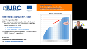 The IURC Asia & Australasia continued to engage the project’s pilot cities in the Thematic Network of “Ecological Transition & Green Deal”, this time focusing on the topic of decarbonisation. The second thematic webinar for the project team organised by the help desk in Japan, which is provided by IGES, “Achieving Carbon Neutrality in Cities” aimed to share how cities are transforming themselves to be carbon neutral and to stress the power of city-to-city cooperation in the fight against climate change. It took place online on 19 October 2021.