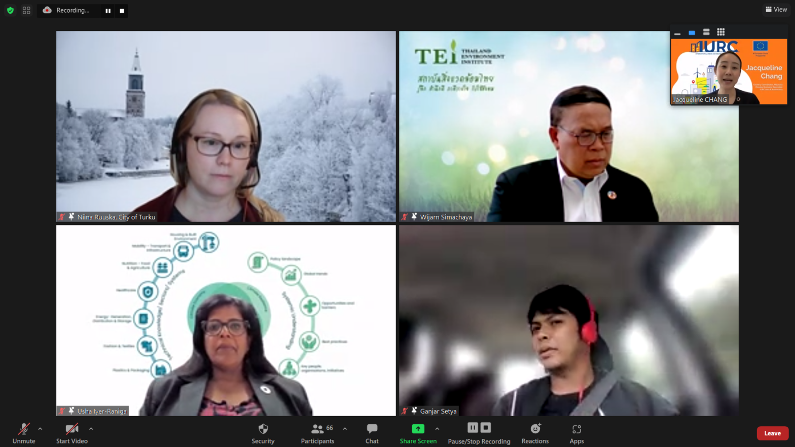 The thematic webinar focused on the key locus of circular change: cities, which have taken the initiative and implemented a range of circular measures, seeking to become fit for the 21st century. IURC cities and city leaders examined how we could take full advantage of the wealth of opportunities in cities to create a system that can work long-term for the economy, society, and the environment. The key experts from Australia, Indonesia, Malaysia, Thailand and Finland from the IURC network also shared how we can use our current resources to re-design cities from within as vibrant systems that operate and provide better public services more efficiently, improve how buildings are used, re-imagine food smart cities and how to better protect the well-being of citizens.