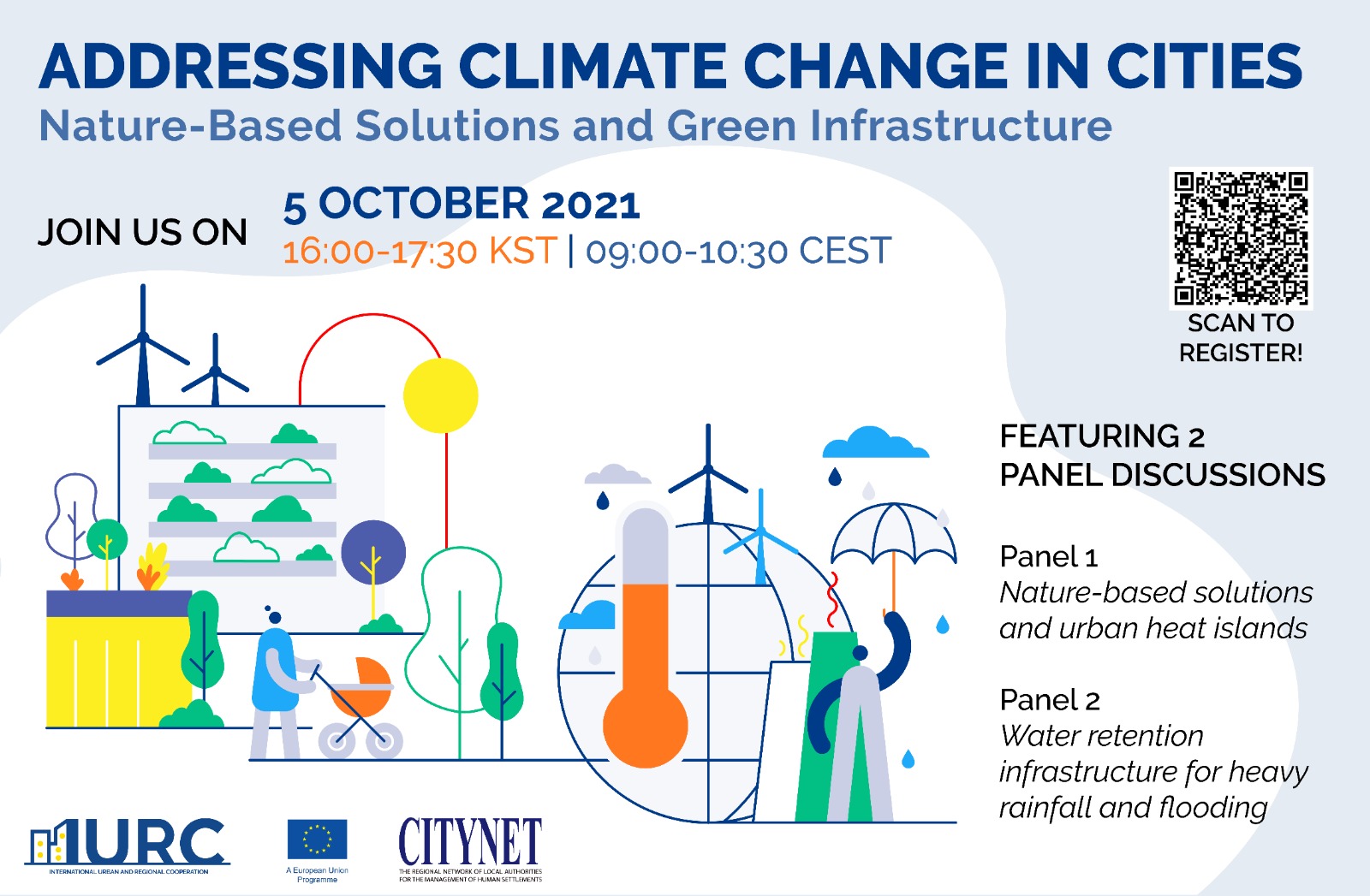 This thematic cluster webinar is a part of International Urban and Regional Cooperation (IURC) Asia & Australasia, which aims to further urban and regional cooperation in the fields of sustainable urban development and innovation between EU and non-EU cities. Within the thematic network “Ecological Transition & Green Deal,” this webinar will narrow in on two main topics related to current global issues.The effects of climate change are becoming more pronounced around the world. From the unprecedented, deadly flooding in parts of Europe and China, leaving devastation in its wake, to the record heat waves that have caused massive, overwhelming wildfires in Europe, Canada and the U.S, to the unnatural melting of the ice sheets in Greenland and the North, causing the ocean levels to rise.