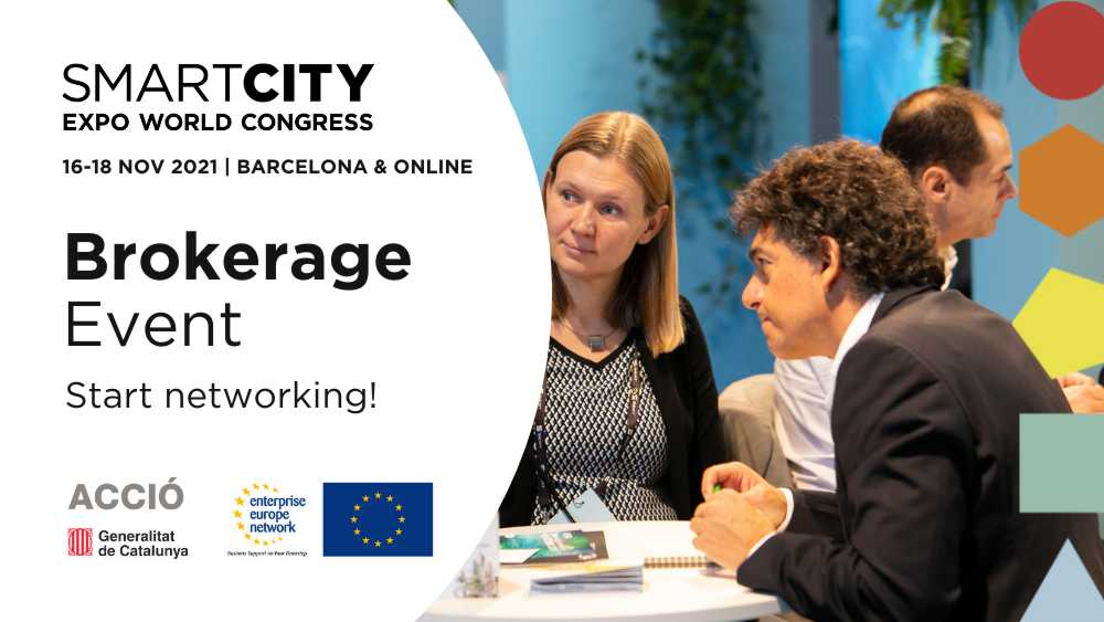 Connect with industry leaders and public stakeholders at the 8th edition of the Smart City Brokerage Event on 16th – 18th November. In this edition brokerage event will be hybrid combining onsite and online b2b meetings. #SCEWC21 #SmartCityBrokerageThe Brokerage Event is organized by ACCIÓ, a department of the Catalan Government’s Ministry of Enterprise and Labour, with the support of the Enterprise Europe Network, the largest business support network worldwide.
