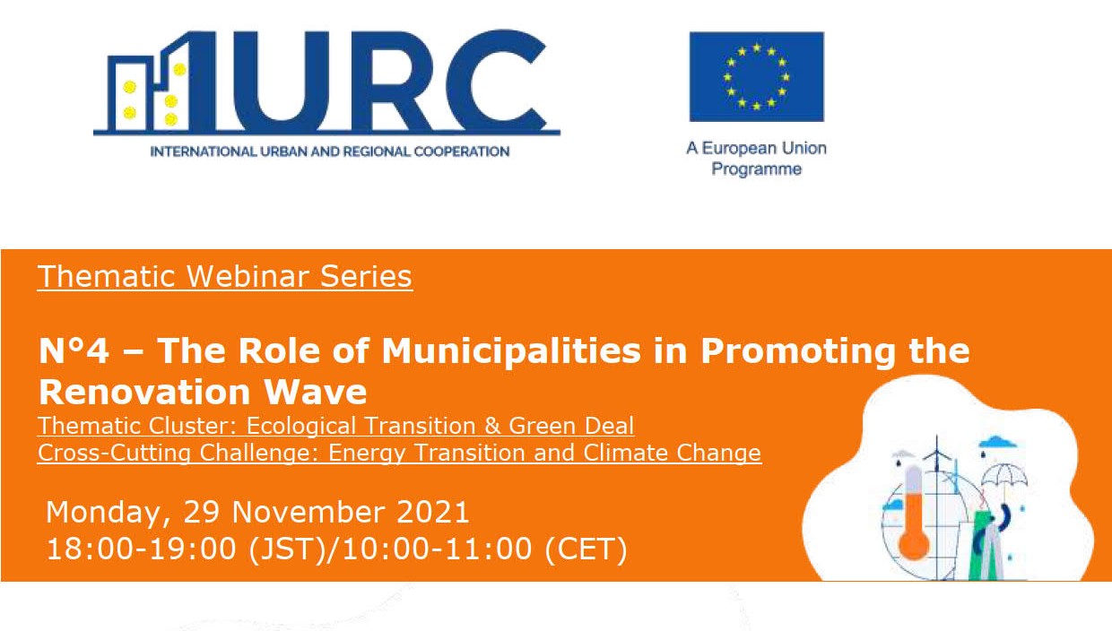 examples in both EU and Japan.Time Programme 10:00 CET (18:00 JST) Opening Remarks and background to the webinar Prof. Hidefumi Imura, IURC Asia-Australasia, Key Expert for Japan