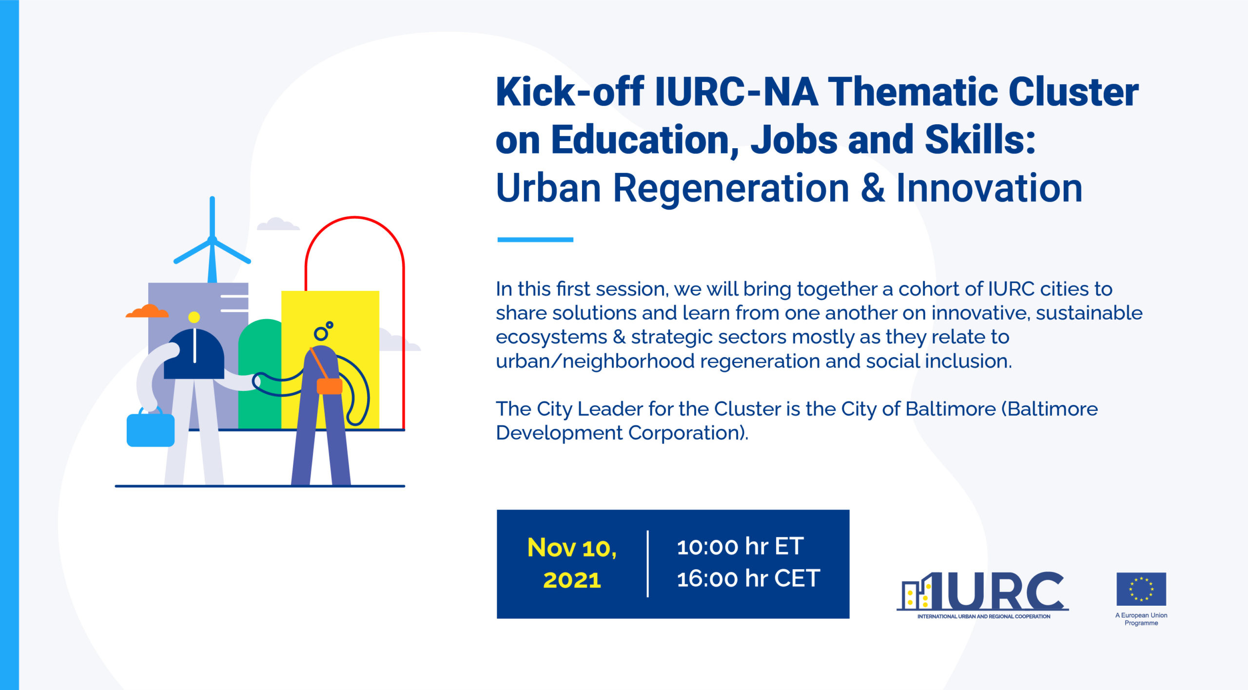 In this first session, we will bring together a cohort of IURC cities to share solutions and learn from one another on innovative, sustainable ecosystems & strategic sectors mostly as they relate to urban/neighborhood regeneration and social inclusion. The City Leader for the Cluster is the City of Baltimore (Baltimore Development Corporation).